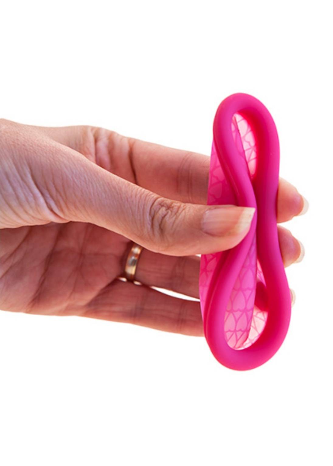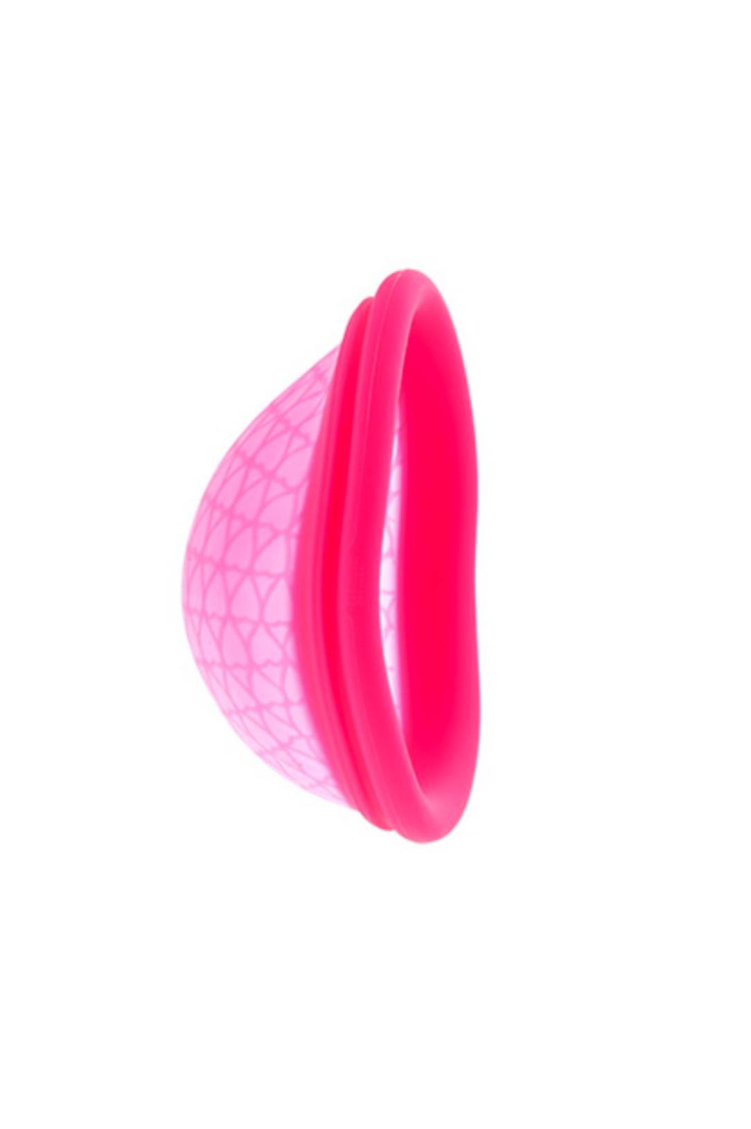Está fabricada de silicona médica apta para el cuerpo, con una anilla flexible pero ciertamente rígida que se acomodaría en las paredes vaginales y con doble borde a prueba de fugas. Formada también por un «saco» del mismo material que retiene el flujo para que no se derrame.